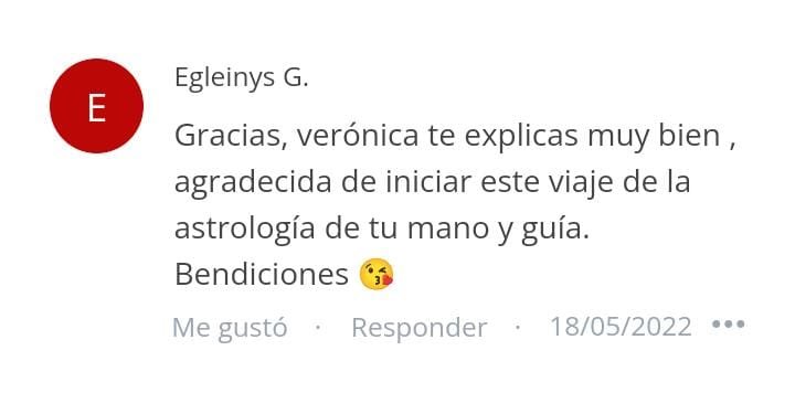 “…Tu curso Verónica me reveló una manera sincera de conocerme en profundidad. Por fin comprendí los sucesos que tuve que atravesar en esta vida. Ahora estoy preparada para lo que viene.