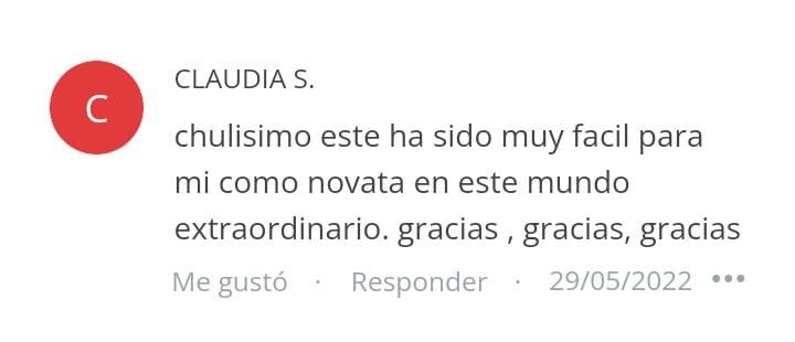 He realizado cursos muy costosos que ni siquiera se acercan al tuyo. Estoy muy agradecida contigo y con tu equipo…”